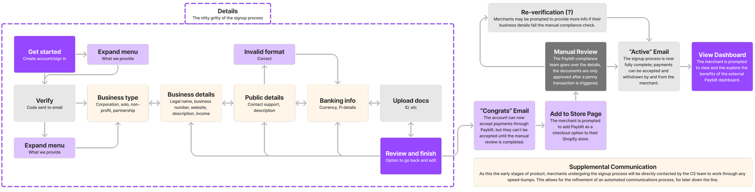 I joined Paybilt as they were working on a second version of their Shopify integration. In terms of compliance, it’s pretty demanding for the user - evidenced by the number of users who began the process and dropped out halfway. Through research and iteration, my work on this redesign led to a 20% reduction in those dropout rates.